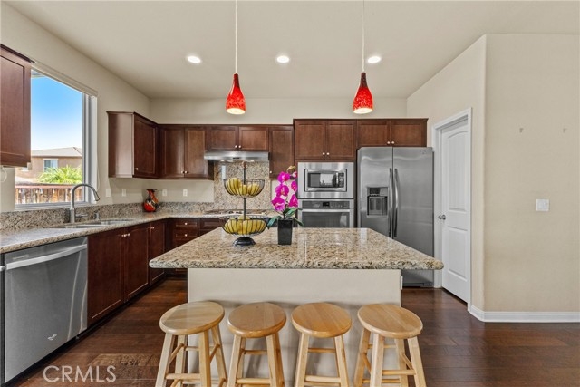 BACK ON THE MARKET!!! Nestled inside the highly sought-after exclusive gated community of The Lakes, this beautifully upgraded home offers the perfect blend of modern elegance, comfort, and resort-style amenities. Step inside to find an open-concept floor plan designed for both daily living and entertaining. The gourmet kitchen features granite countertops, a huge center island, stainless steel appliances, and an abundance of cabinetry—perfect for gathering with family and friends. The hardwood floors downstairs add warmth and sophistication, while plush carpeting upstairs ensures comfort in the private living spaces. With 5 spacious bedrooms, plus a downstairs office, there’s room for everyone. The home offers 2 full bathrooms upstairs and a convenient half bath downstairs, making it as functional as it is stylish. Outside, the sellers spared no expense—investing over $50,000 in backyard upgrades. Enjoy year-round outdoor living with low-maintenance artificial turf and AlumaWood patio covers, creating a private oasis ideal for relaxing evenings or weekend gatherings. Living here means more than just owning a home—it’s a lifestyle. The Lakes is a spectacular gated neighborhood featuring three scenic lakes, neighborhood parks, and miles of walking trails. Residents enjoy access to kayaking, boating, and fishing, plus The Bay Club, a 20,000 sq. ft. facility offering: Two swimming pools, waterslides, spa & fitness center, Outdoor grill/patio with fireplace, Event center, reading room, and Wi-Fi lounge. The Menifee Unified School District serves the community with nearby Southshore Elementary, Bell Mountain Middle, and Heritage High. Higher education is also within reach at Mt. San Jacinto College. Convenience is just minutes away—Menifee Countryside Marketplace offers Super Target, Lowe’s, Best Buy, Red Robin, In-N-Out, and Starbucks. For golf enthusiasts, the Menifee Lakes Country Club features two Ted Robinson-designed courses, lush fairways, and affordable dining. 29106 Hidden Meadow Dr is more than a home—it’s a lifestyle upgrade. Don’t miss the chance to live in one of Menifee’s most desirable gated communities. Call today to schedule your private tour!