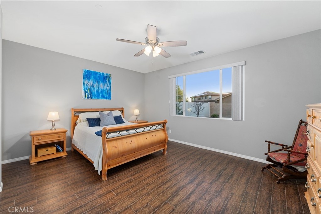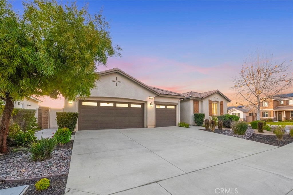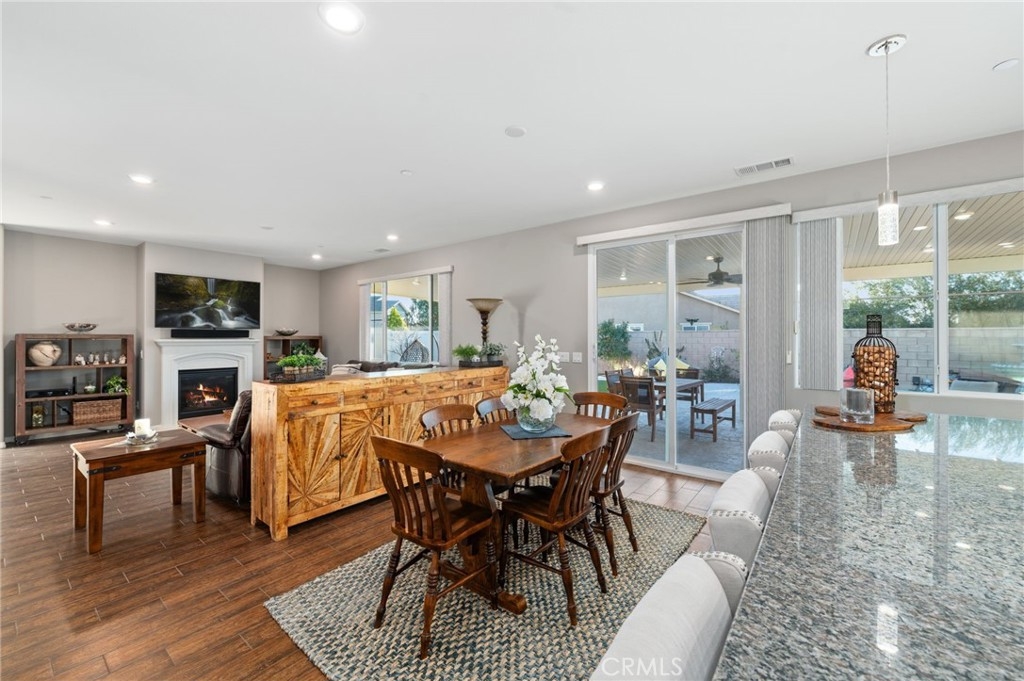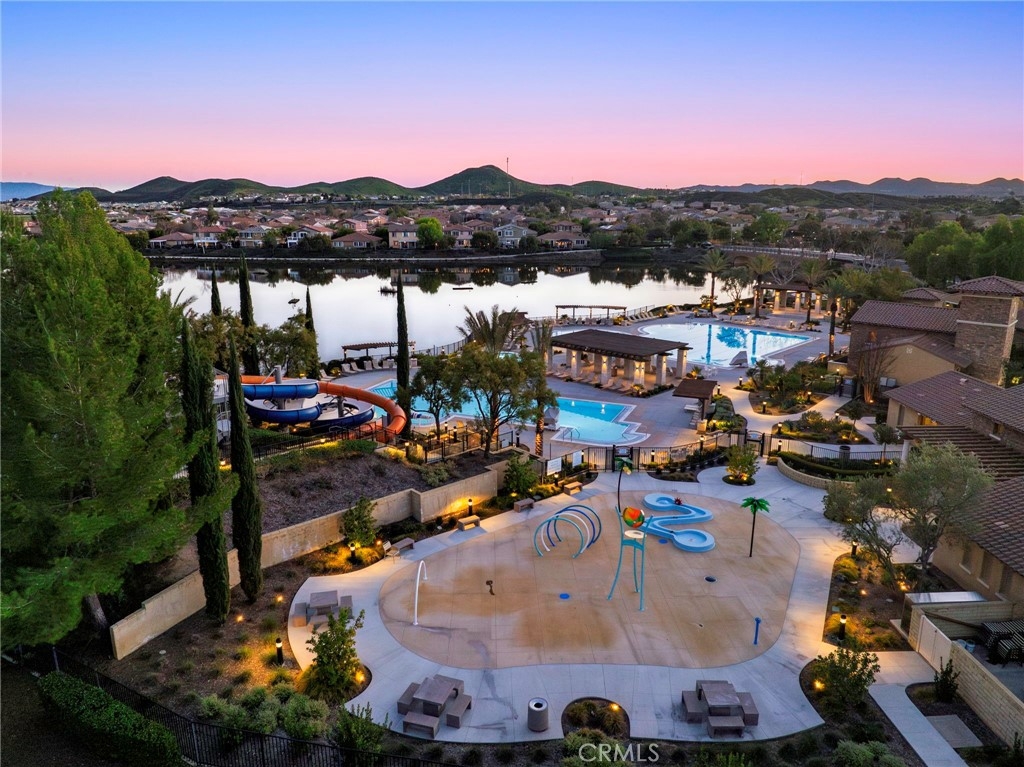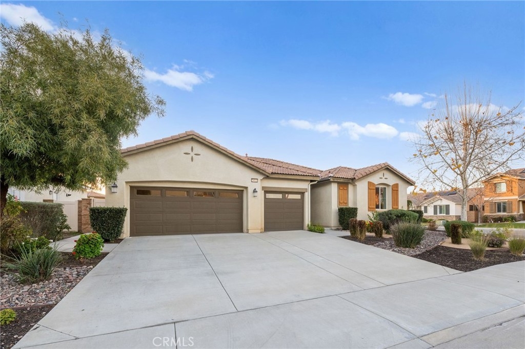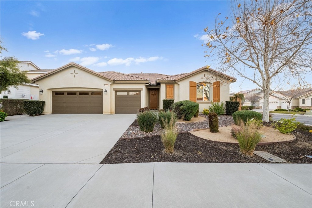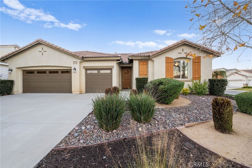 Welcome to your dream oasis in The Lakes, a prestigious gated community nestled in the heart of Menifee, California. Step into luxury as you enter this single-story home, perfectly situated on a corner lot for added privacy and curb appeal. With 3 bedrooms and 2 bathrooms, this residence offers a seamless blend of elegance and functionality. As you step inside, you're greeted by an inviting open floor plan with exquisite wood plank tile floors throughout, creating an ambiance of warmth. The spacious living room sets the stage for relaxation, complete with a fireplace, ideal for cozying up during chilly evenings. The heart of the home lies in the spacious kitchen, featuring a large island, stainless steel appliances, double oven, granite countertops, and a gas cooktop. Entertain with ease as the kitchen seamlessly flows into the dining area, offering the perfect space for hosting intimate gatherings or family meals. Off the kitchen, discover a versatile bonus room or den, providing endless possibilities for a home office, playroom, or an additional bedroom to suit your needs. Retreat to the primary suite, where the ensuite bathroom features a separate tub and shower, dual sink vanity, and a walk-in shower, offering a serene sanctuary to unwind after a long day. Two additional bedrooms and a secondary bathroom with a dual sink vanity ensure ample space for family or guests. Step outside to your own private paradise and backyard oasis. Lounge under the shade of the alumawood patio cover, equipped with built-in recessed lighting and dual ceiling fans, perfect for enjoying al fresco dining. Delight in the low-maintenance lifestyle with turf grass and savor the sweetness of homegrown fruit from the backyard's fruit trees. The Lakes community offers an unparalleled lifestyle enriched by its three lakes, parks, and walking trails. Residents enjoy an array of recreational amenities, including kayaking, boating, and fishing, while the Bay Club serves as a hub for fitness, leisure, and social gatherings. With its state-of-the-art facilities, including a fitness center, waterslides, swimming pools, spa, and grill/patio area, every day feels like a vacation. Don't miss the opportunity to make this extraordinary residence your new home sweet home. Schedule your private tour today.
