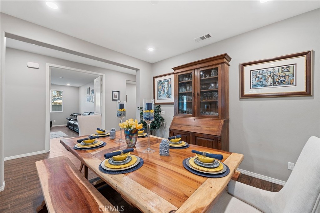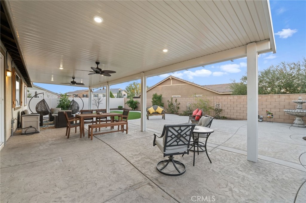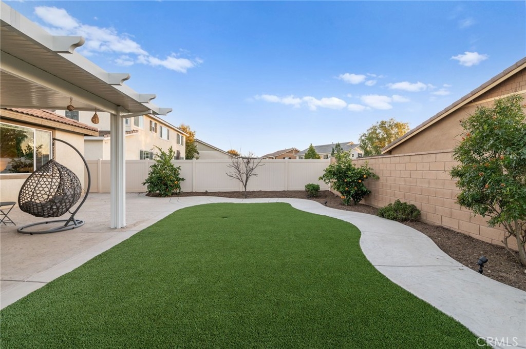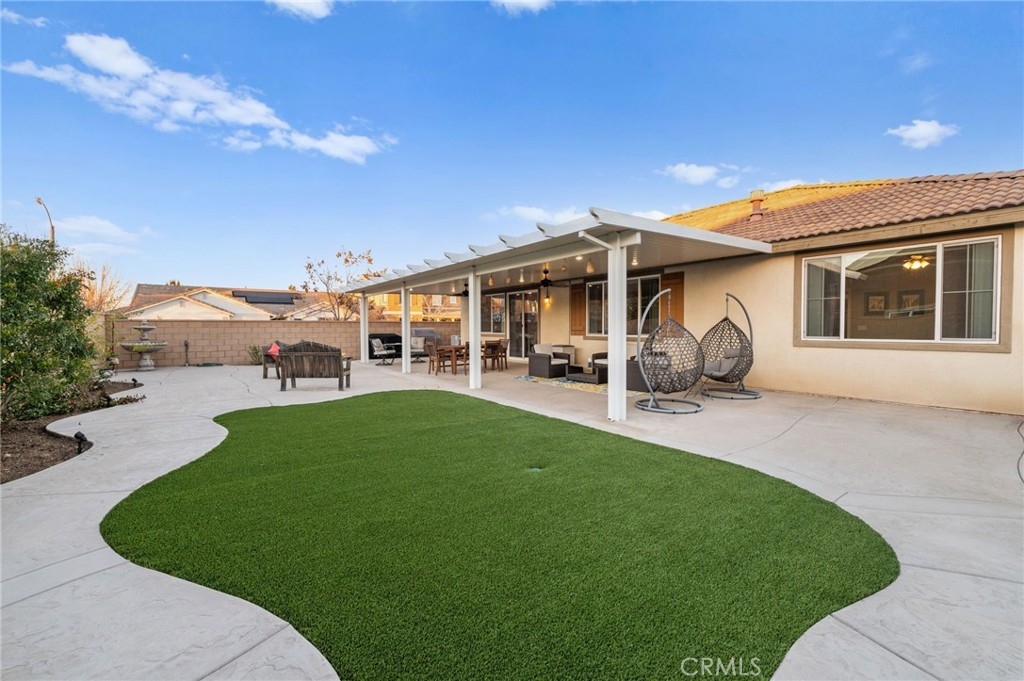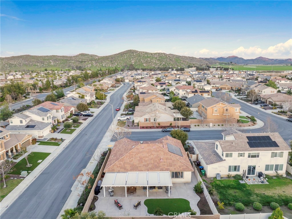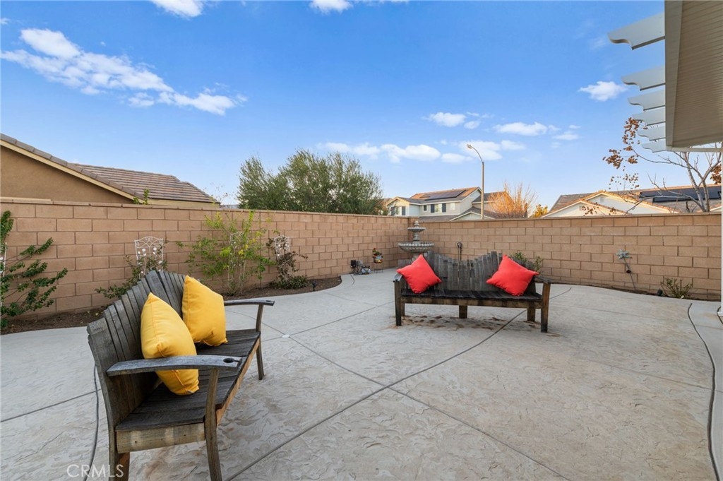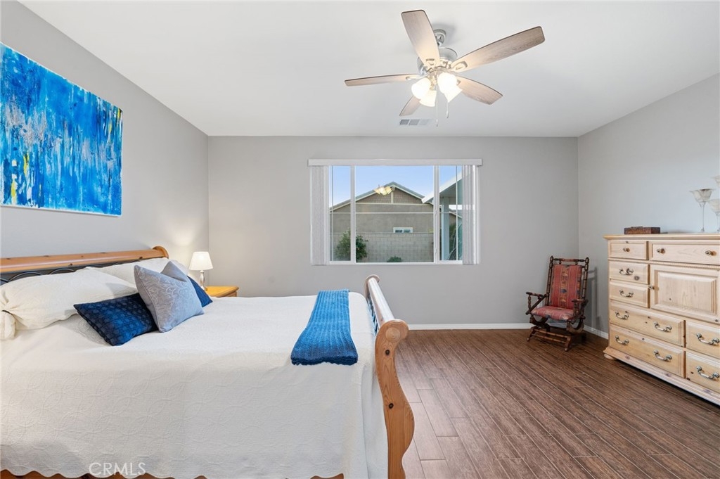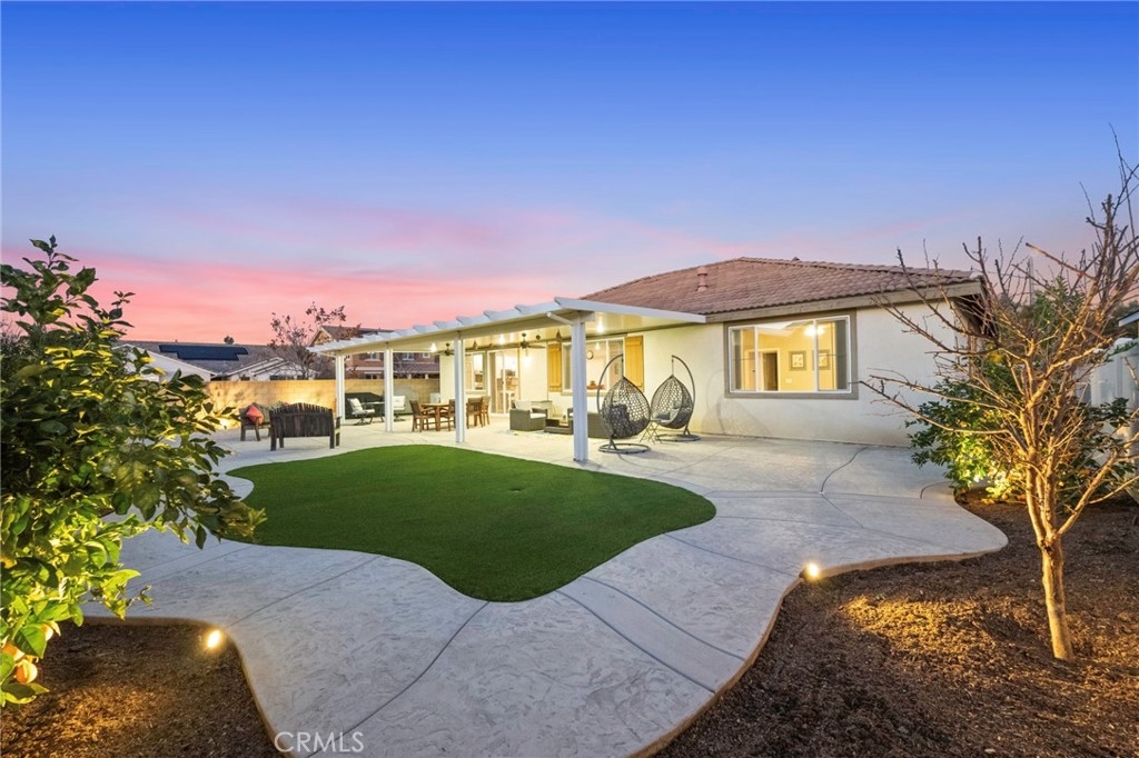 Welcome to your dream oasis in The Lakes, a prestigious gated community nestled in the heart of Menifee, California. Step into luxury as you enter this single-story home, perfectly situated on a corner lot for added privacy and curb appeal. With 3 bedrooms and 2 bathrooms, this residence offers a seamless blend of elegance and functionality. As you step inside, you're greeted by an inviting open floor plan with exquisite wood plank tile floors throughout, creating an ambiance of warmth. The spacious living room sets the stage for relaxation, complete with a fireplace, ideal for cozying up during chilly evenings. The heart of the home lies in the spacious kitchen, featuring a large island, stainless steel appliances, double oven, granite countertops, and a gas cooktop. Entertain with ease as the kitchen seamlessly flows into the dining area, offering the perfect space for hosting intimate gatherings or family meals. Off the kitchen, discover a versatile bonus room or den, providing endless possibilities for a home office, playroom, or an additional bedroom to suit your needs. Retreat to the primary suite, where the ensuite bathroom features a separate tub and shower, dual sink vanity, and a walk-in shower, offering a serene sanctuary to unwind after a long day. Two additional bedrooms and a secondary bathroom with a dual sink vanity ensure ample space for family or guests. Step outside to your own private paradise and backyard oasis. Lounge under the shade of the alumawood patio cover, equipped with built-in recessed lighting and dual ceiling fans, perfect for enjoying al fresco dining. Delight in the low-maintenance lifestyle with turf grass and savor the sweetness of homegrown fruit from the backyard's fruit trees. The Lakes community offers an unparalleled lifestyle enriched by its three lakes, parks, and walking trails. Residents enjoy an array of recreational amenities, including kayaking, boating, and fishing, while the Bay Club serves as a hub for fitness, leisure, and social gatherings. With its state-of-the-art facilities, including a fitness center, waterslides, swimming pools, spa, and grill/patio area, every day feels like a vacation. Don't miss the opportunity to make this extraordinary residence your new home sweet home. Schedule your private tour today.