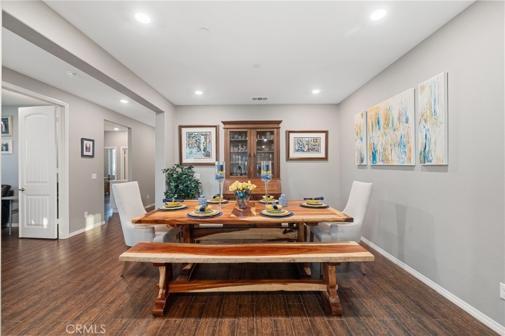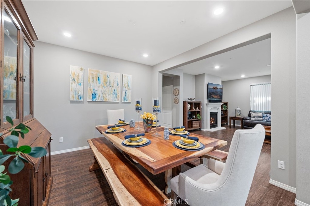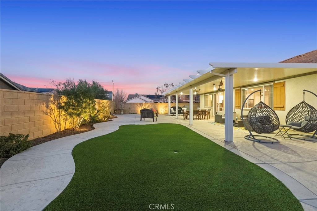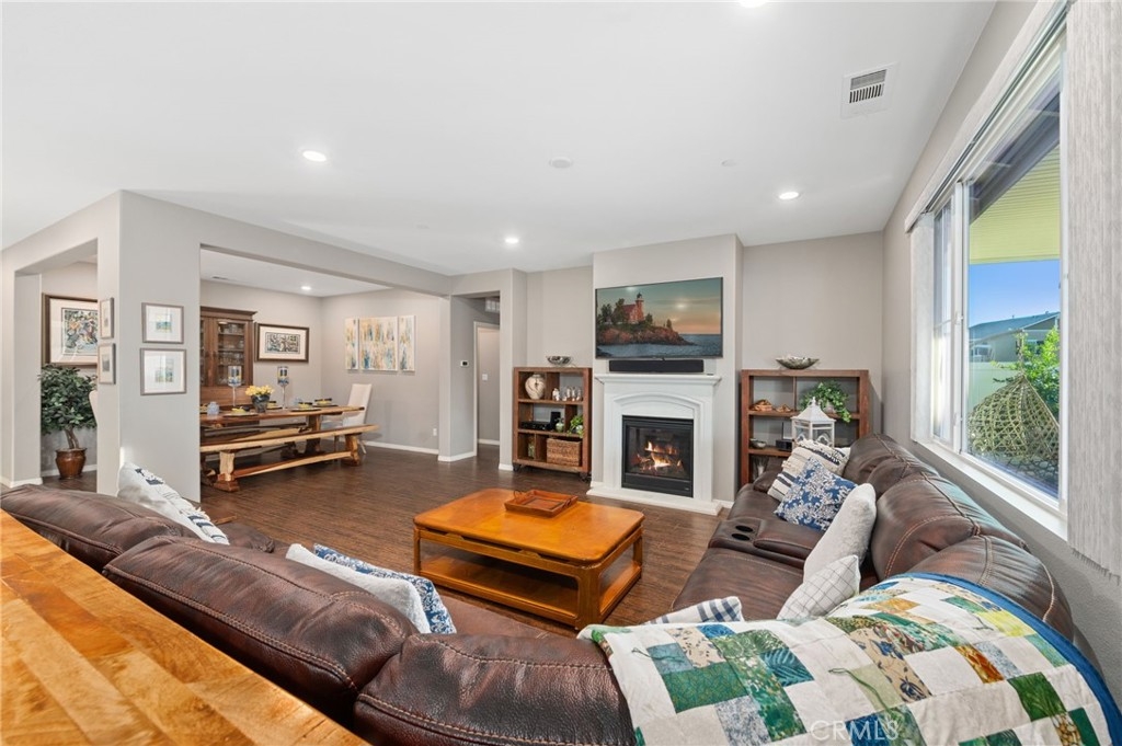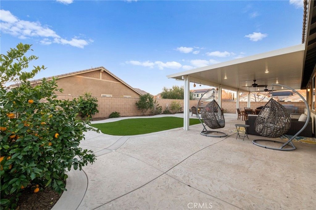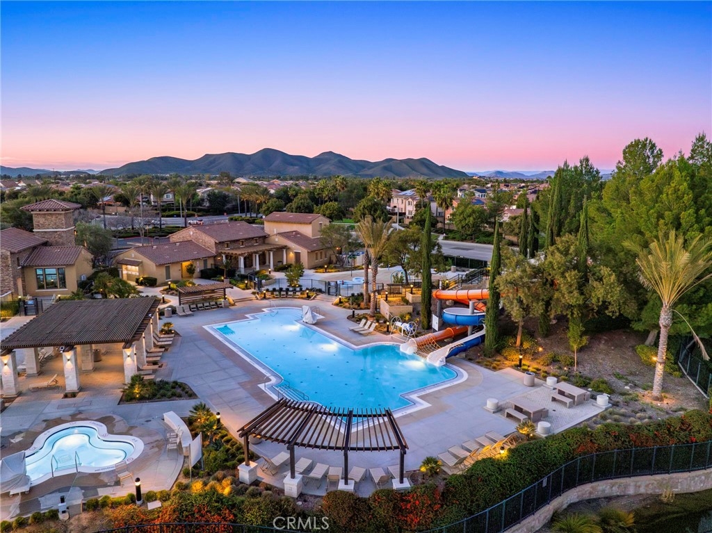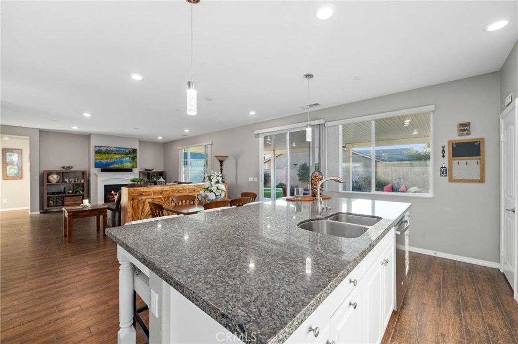 Welcome to your dream oasis in The Lakes, a prestigious gated community nestled in the heart of Menifee, California. Step into luxury as you enter this single-story home, perfectly situated on a corner lot for added privacy and curb appeal. With 3 bedrooms and 2 bathrooms, this residence offers a seamless blend of elegance and functionality. As you step inside, you're greeted by an inviting open floor plan with exquisite wood plank tile floors throughout, creating an ambiance of warmth. The spacious living room sets the stage for relaxation, complete with a fireplace, ideal for cozying up during chilly evenings. The heart of the home lies in the spacious kitchen, featuring a large island, stainless steel appliances, double oven, granite countertops, and a gas cooktop. Entertain with ease as the kitchen seamlessly flows into the dining area, offering the perfect space for hosting intimate gatherings or family meals. Off the kitchen, discover a versatile bonus room or den, providing endless possibilities for a home office, playroom, or an additional bedroom to suit your needs. Retreat to the primary suite, where the ensuite bathroom features a separate tub and shower, dual sink vanity, and a walk-in shower, offering a serene sanctuary to unwind after a long day. Two additional bedrooms and a secondary bathroom with a dual sink vanity ensure ample space for family or guests. Step outside to your own private paradise and backyard oasis. Lounge under the shade of the alumawood patio cover, equipped with built-in recessed lighting and dual ceiling fans, perfect for enjoying al fresco dining. Delight in the low-maintenance lifestyle with turf grass and savor the sweetness of homegrown fruit from the backyard's fruit trees. The Lakes community offers an unparalleled lifestyle enriched by its three lakes, parks, and walking trails. Residents enjoy an array of recreational amenities, including kayaking, boating, and fishing, while the Bay Club serves as a hub for fitness, leisure, and social gatherings. With its state-of-the-art facilities, including a fitness center, waterslides, swimming pools, spa, and grill/patio area, every day feels like a vacation. Don't miss the opportunity to make this extraordinary residence your new home sweet home. Schedule your private tour today.